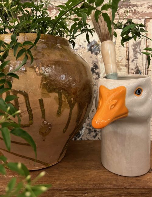 Vacker handmålad blomvas i keramik.