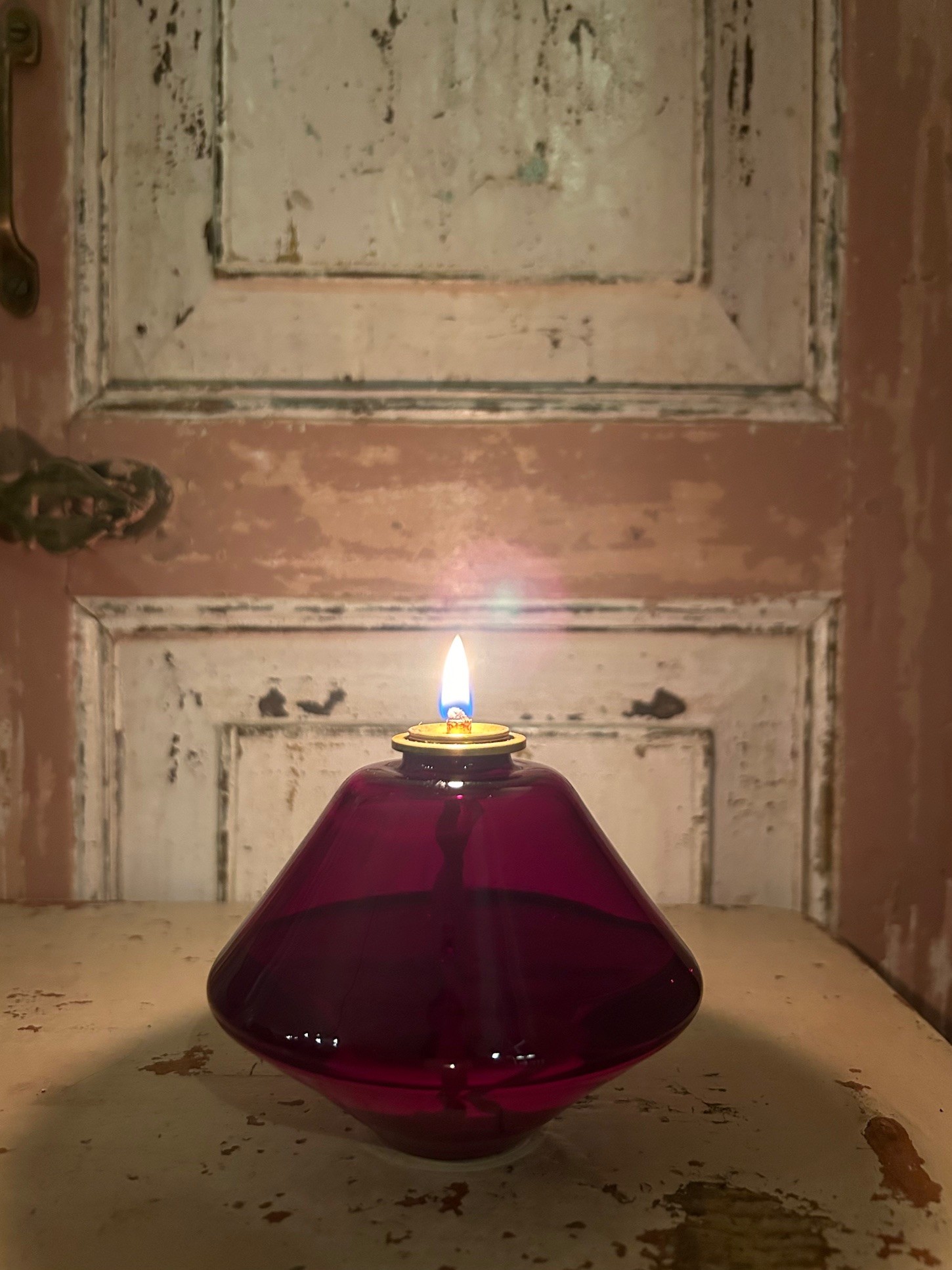 Aki oljelampa är en moderniseringen av en traditionell gammal lucerna. Liten oljelampa helt handblåst och klar i rena ljusa färger.