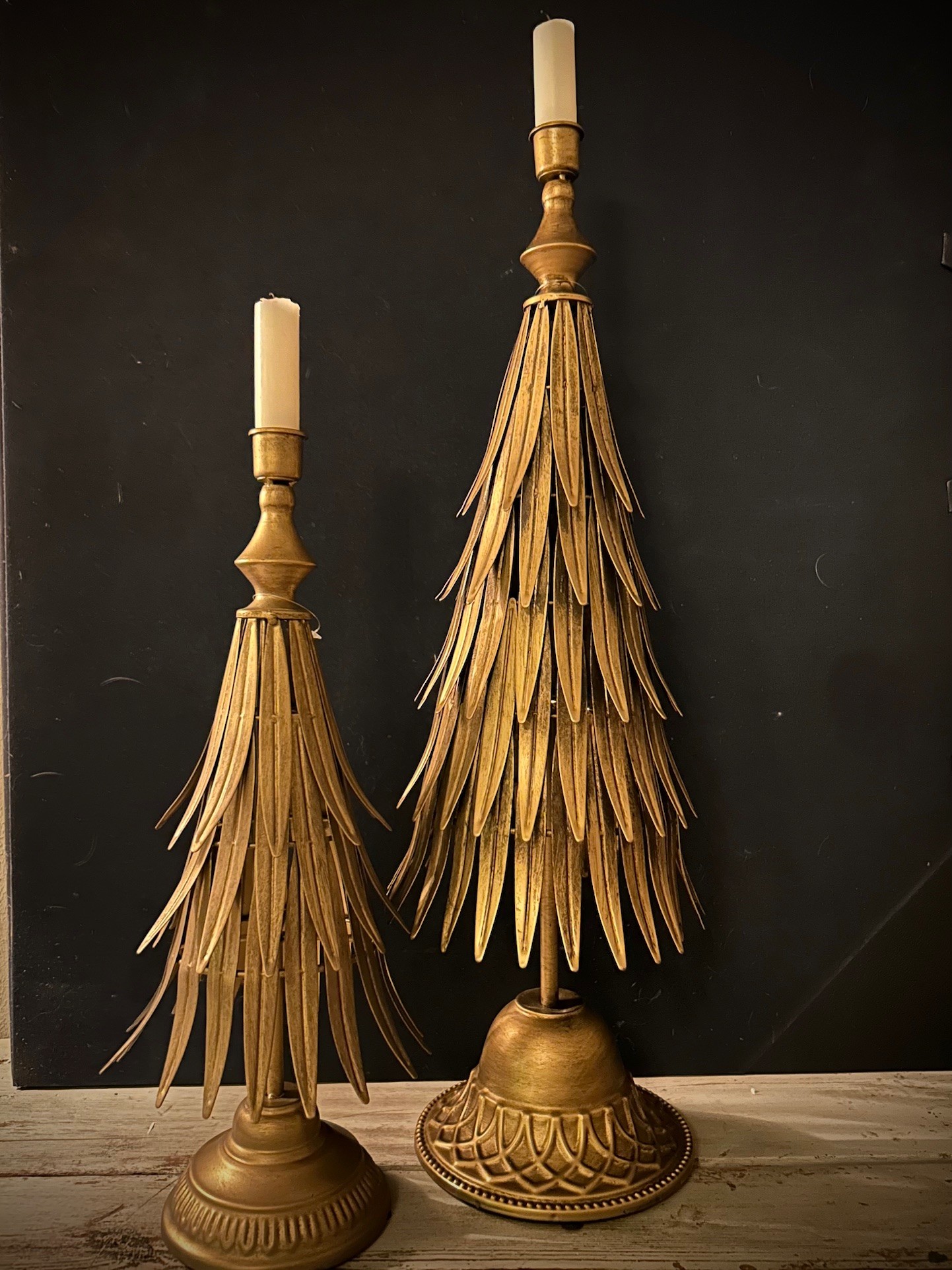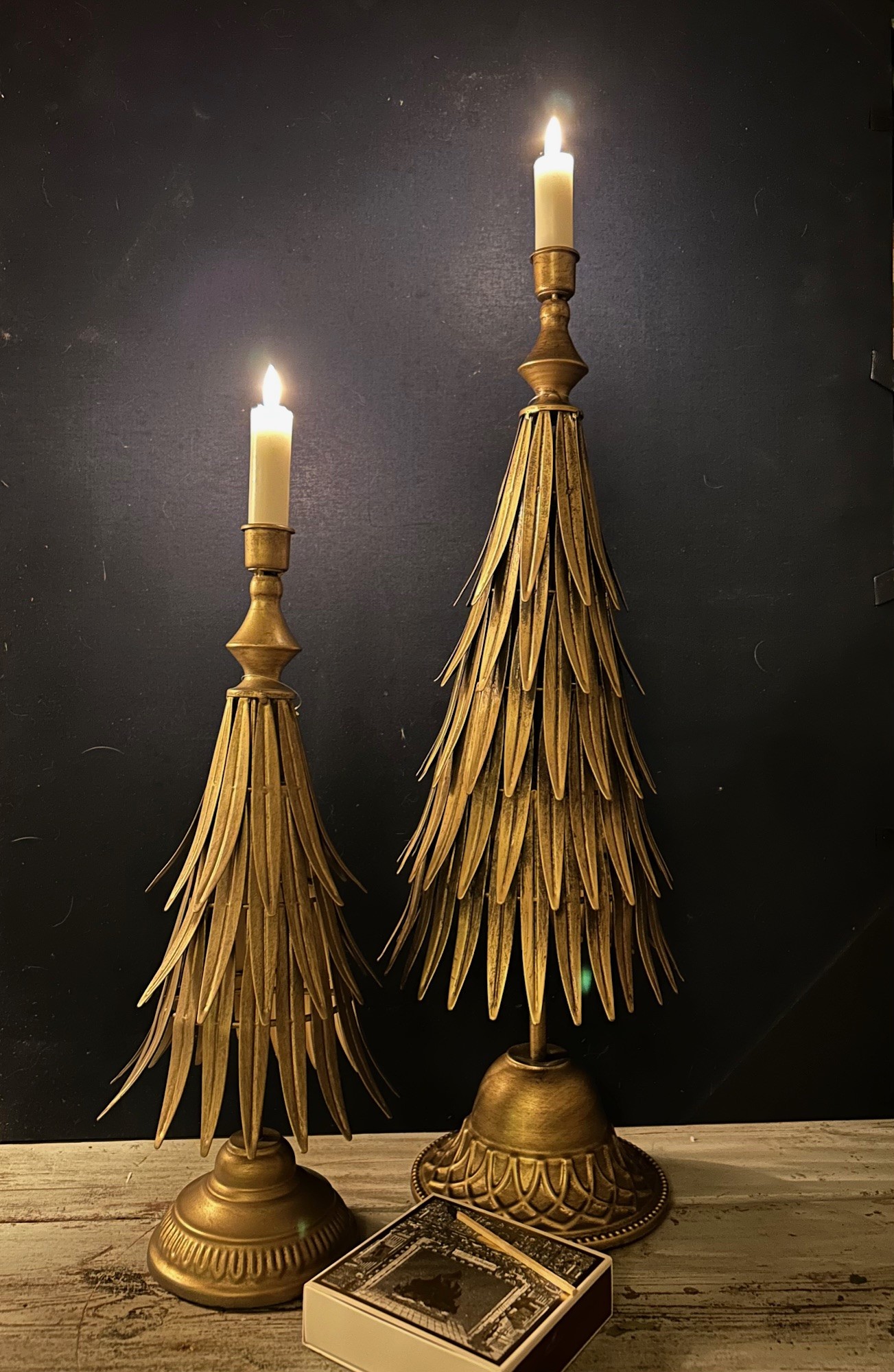 Gran ljusstakar i metall som blir pampiga inslag i ditt hem i december, ljusstakar som är vackra att ställa i fönstret eller på ett sidebord. Granarna har en hållare på toppen för ett kronljus.