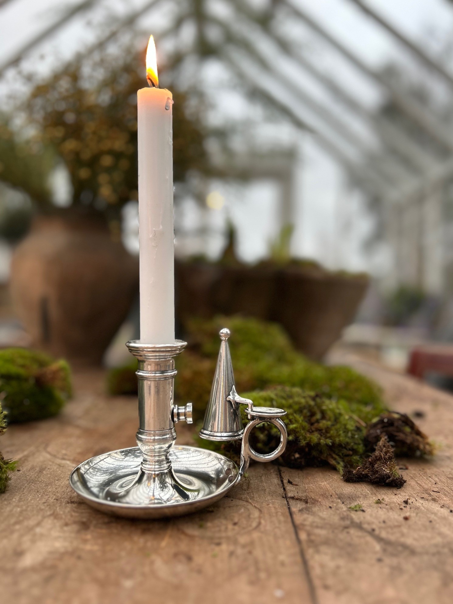 Italian Chamberstick är en vacker klassik ljusstake med ett handtag samt en liten praktisk ljussläckare. Ljusstaken är tillverkad i Italien, klassiska kronljus/antikljus med diameter 2,2 – 2,3 cm passar hållaren.