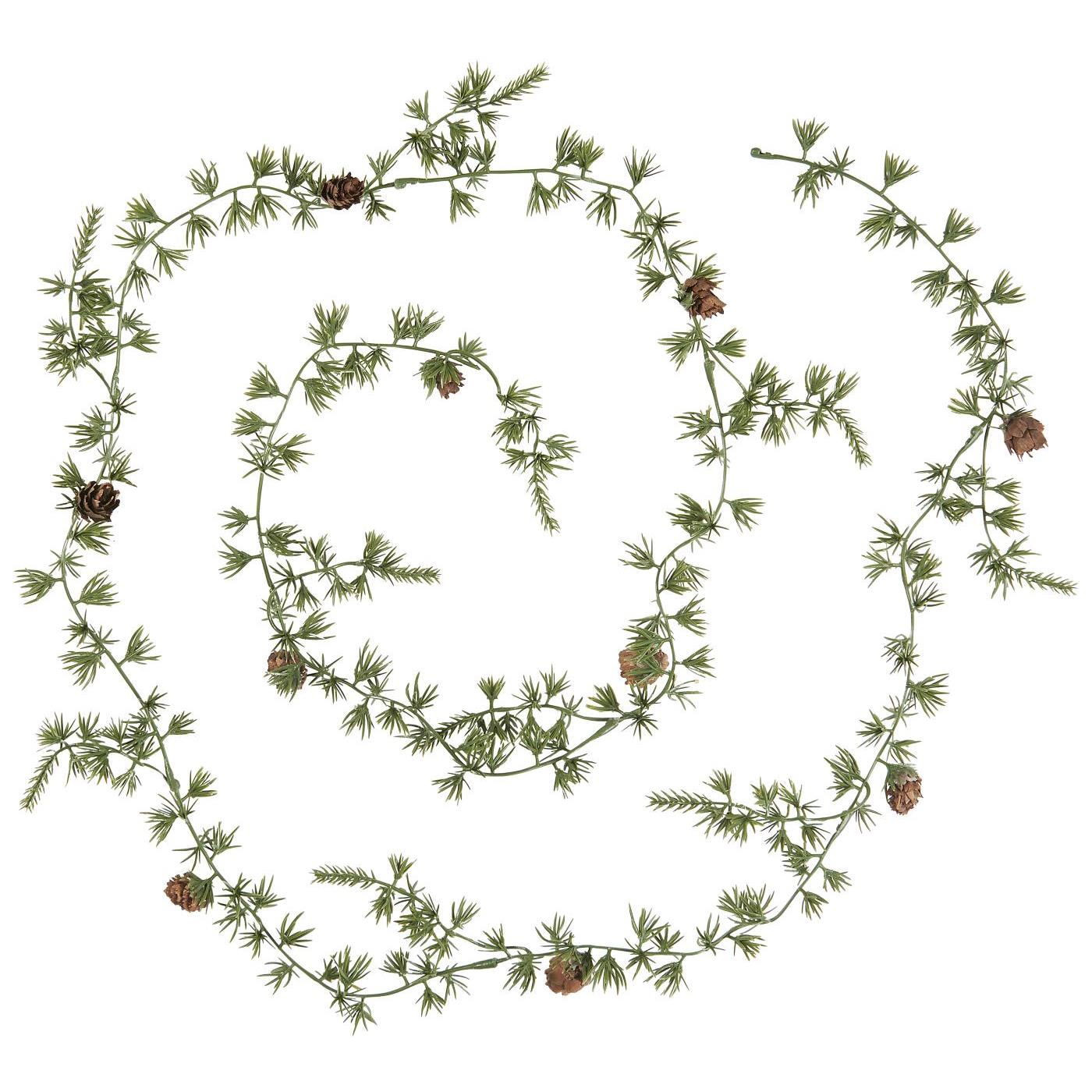 Konstgjord cedergirlang med kottar i ett naturtroget uttryck. Fin att lägga på det dukade bordet, hänga i fönster, vrida runt ett trappräcke. Girlangen är nätt och följsam.