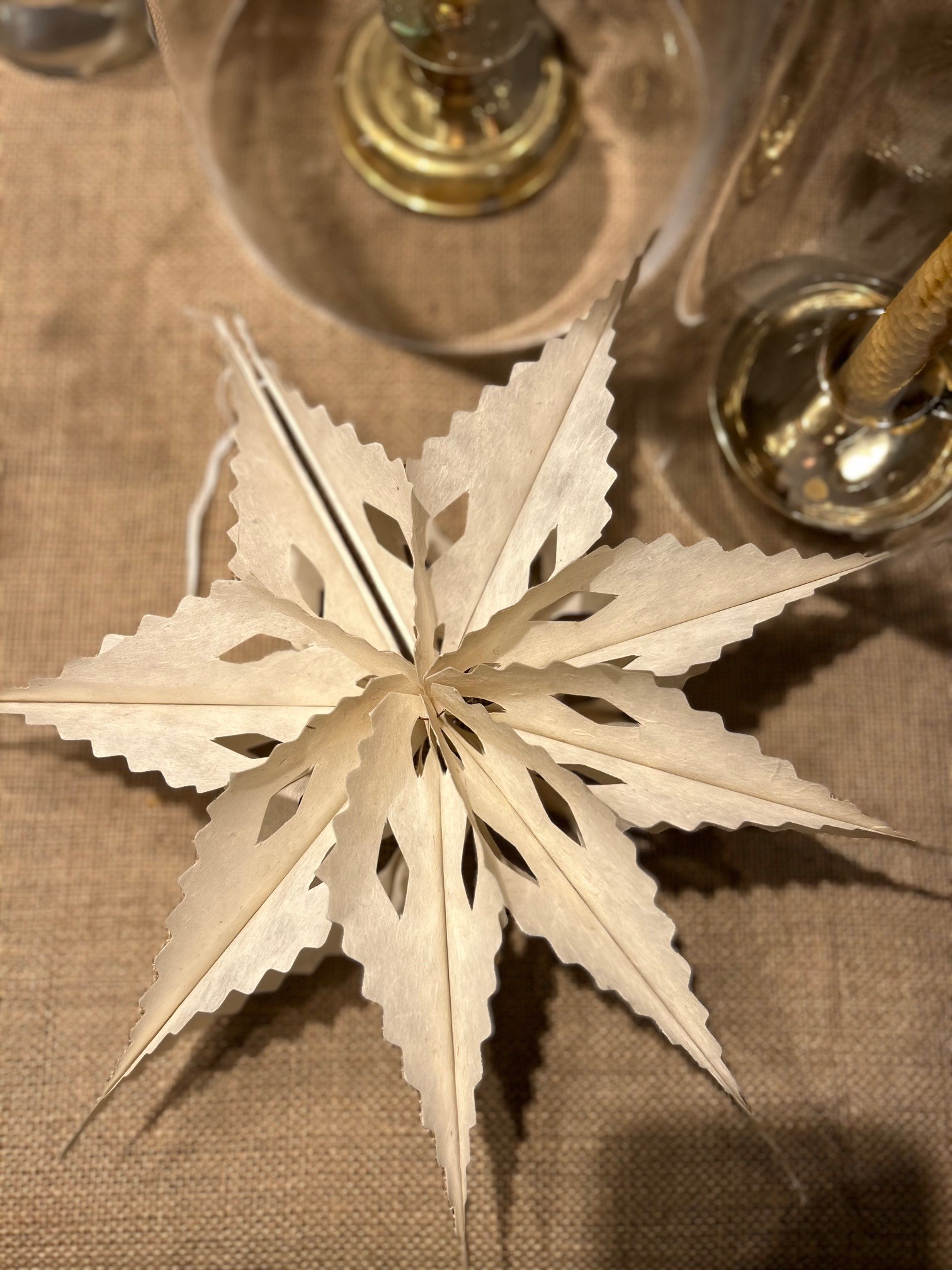 En vacker handtryckt adventsstjärna med papper i tre lager. Enkel att sätta ihop med en magnet på varje rundel, beskrivning medföljer. Sirius stjärna är vacker som den är utan belysning tycker vi.