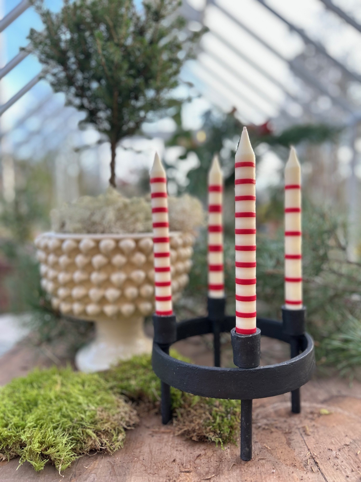De randiga ljusen från Indien är tillverkade av 100% soja, som brinner mycket lugnt och bra. Brinntid 8-10 timmar.