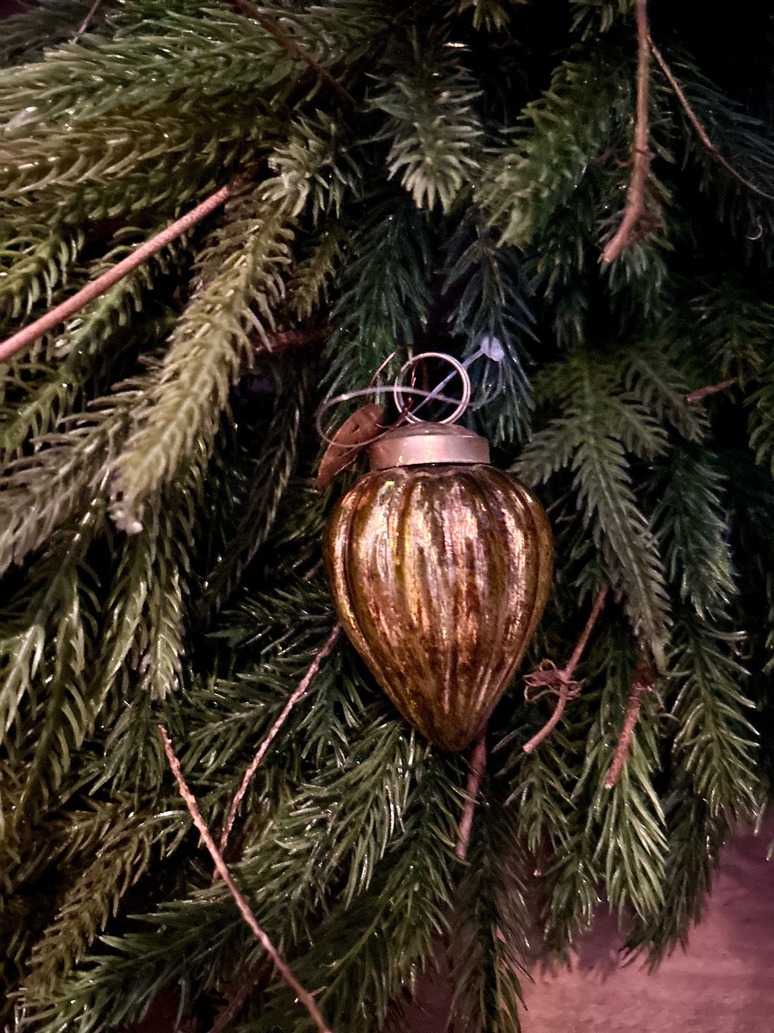 Handgjort vackert julhänge i antikfärgad guld. Kommer utan snöre/band.