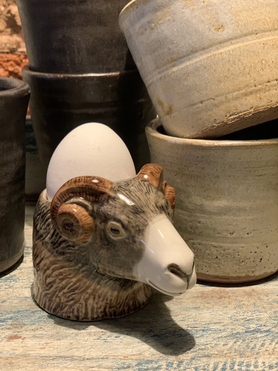 Äggkopp i keramik. Kan även användas som ljuslykta eller att ha flingsalt i.