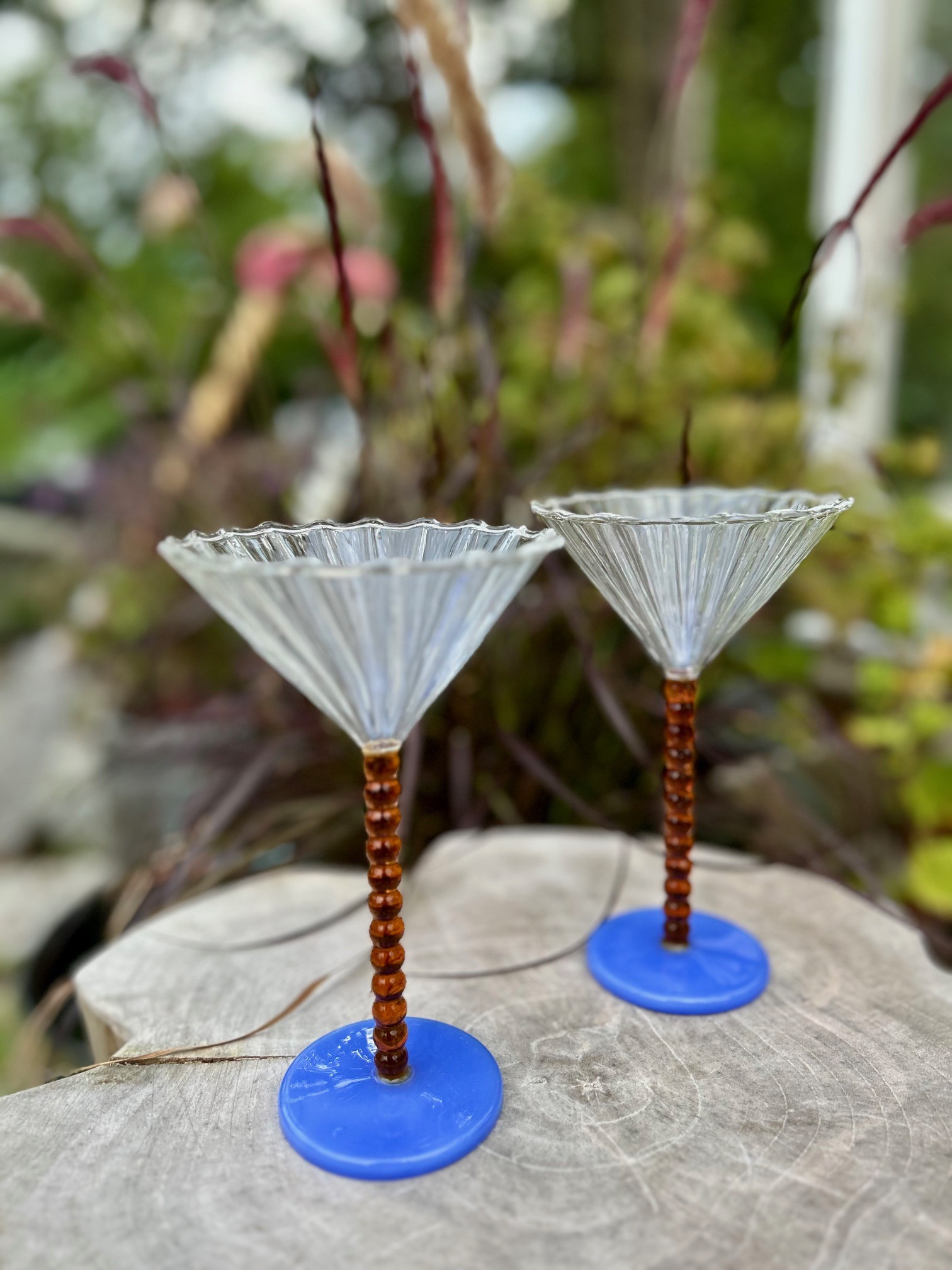 Det fantastiska utseendet på detta set med 2 champagneglas gör dem lämpliga för alla speciella tillfällen. Tillverkade i glas med färgad fot, den subtila formen ger dem ett unikt utseende. Dessa imponerande glas kan användas till champagne, vatten och andra drycker, såväl som till glass och desserter.