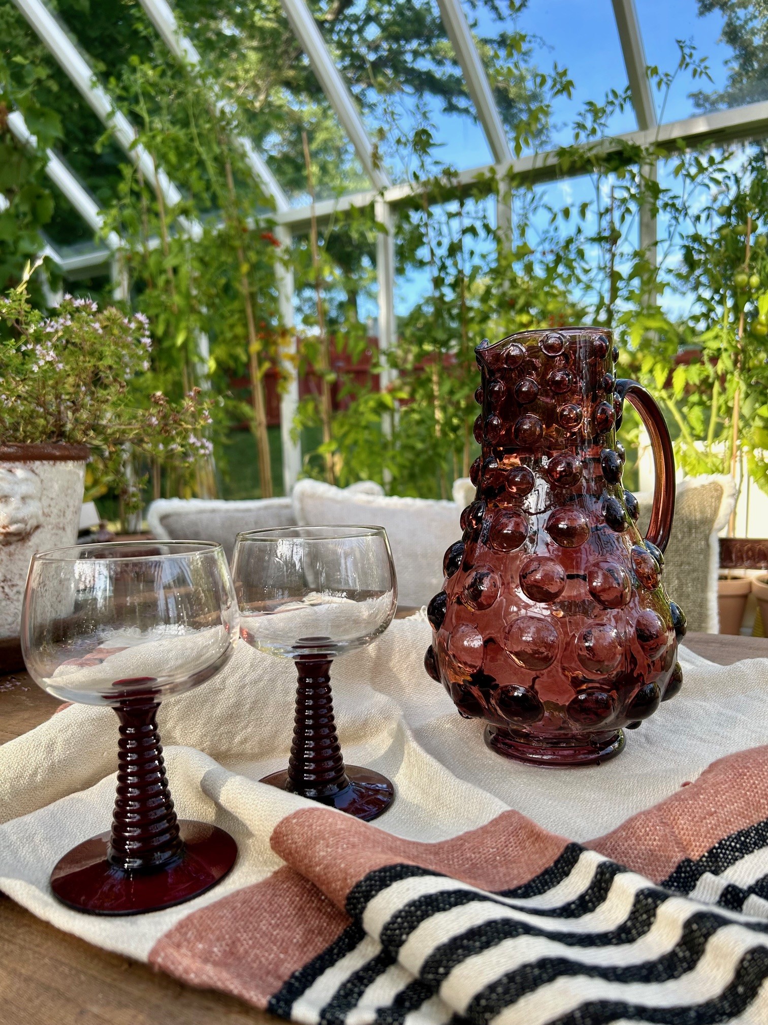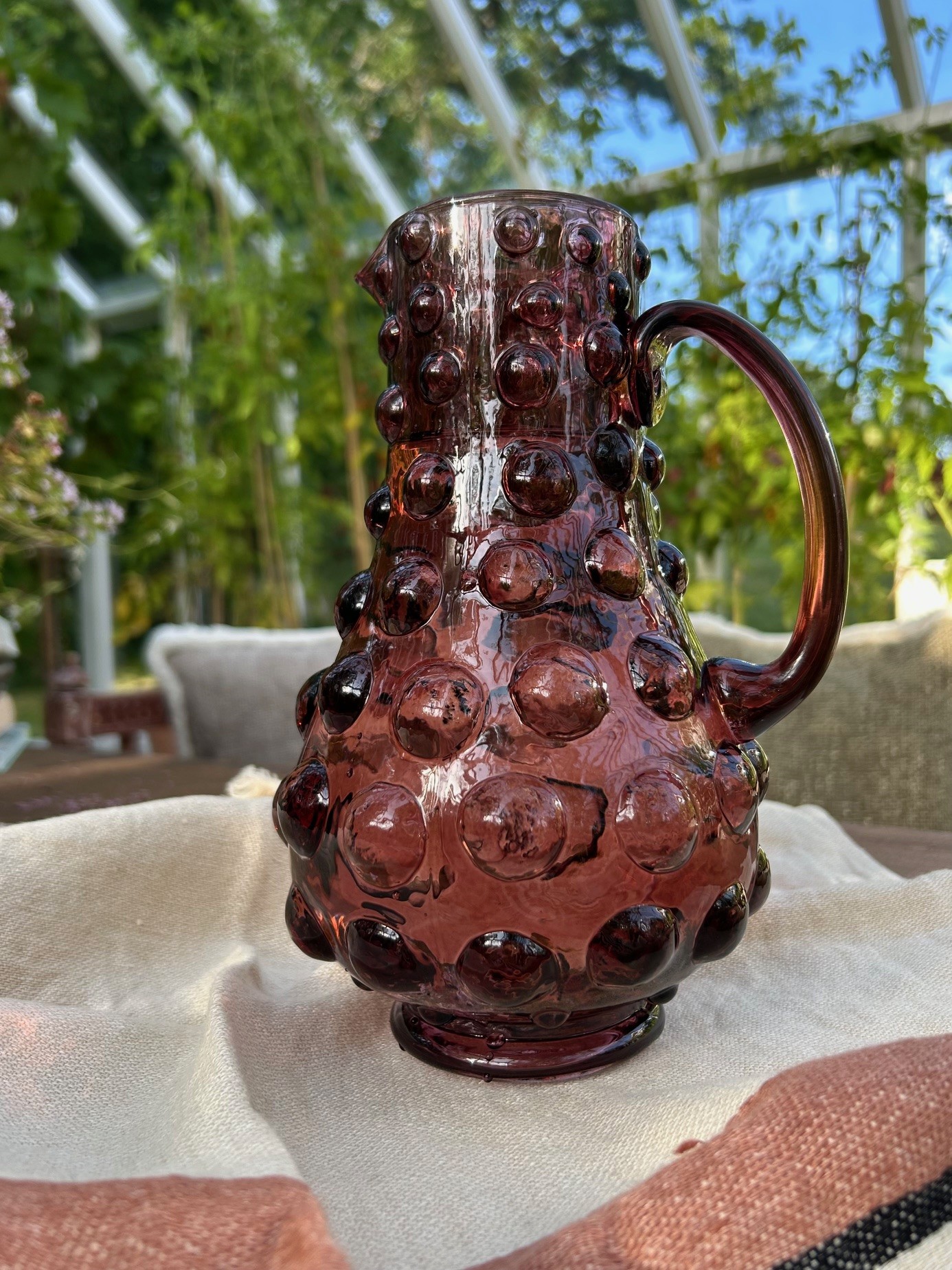 Härlig karaff i glas med stora bubblor, karaffen blir en dekoration i sig själv.