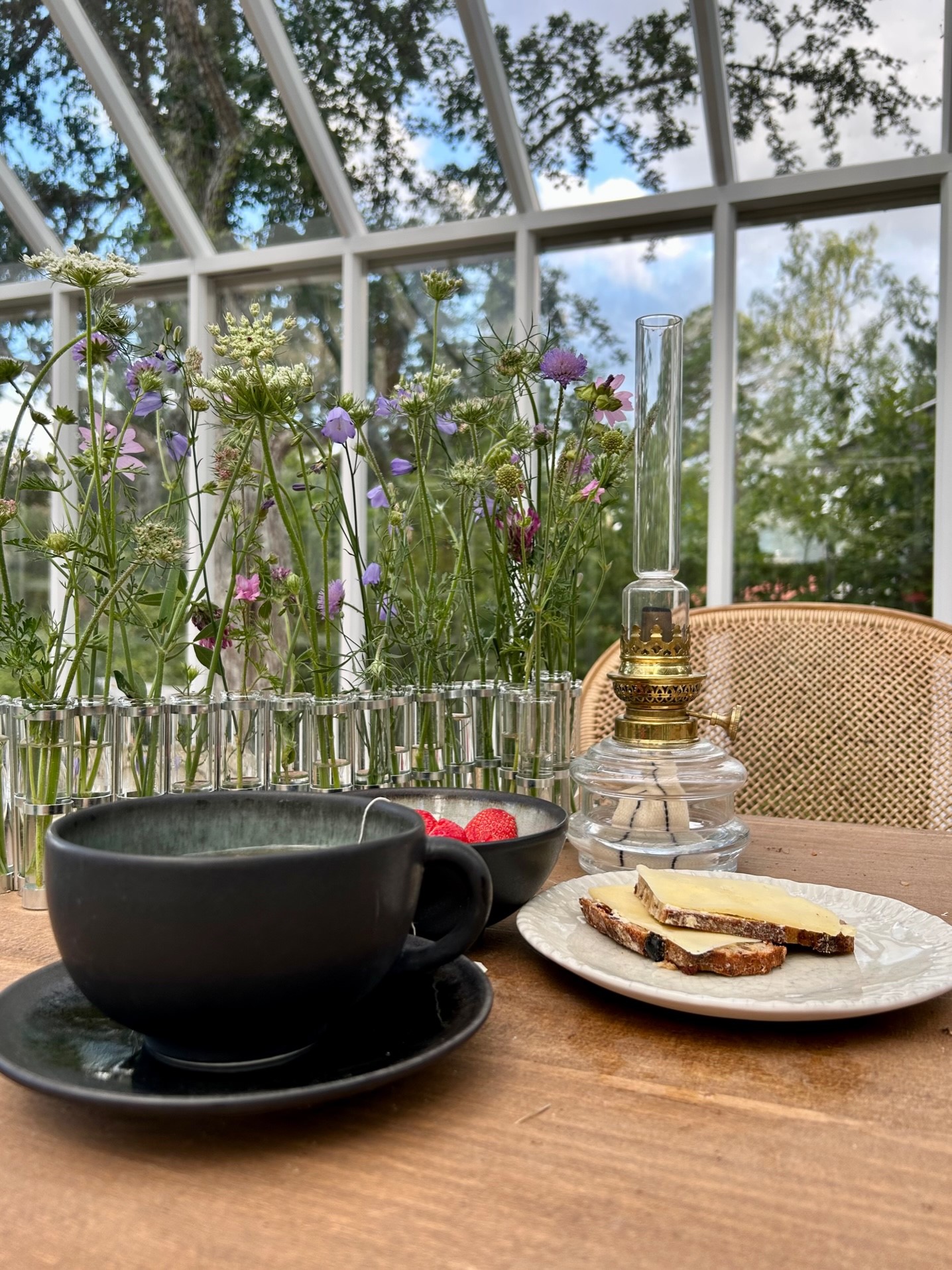 Mått: Kopp diameter 12,5cm, höjd 7,5cm.Fat diameter 17cm. Koppen rymmer 3 dl te