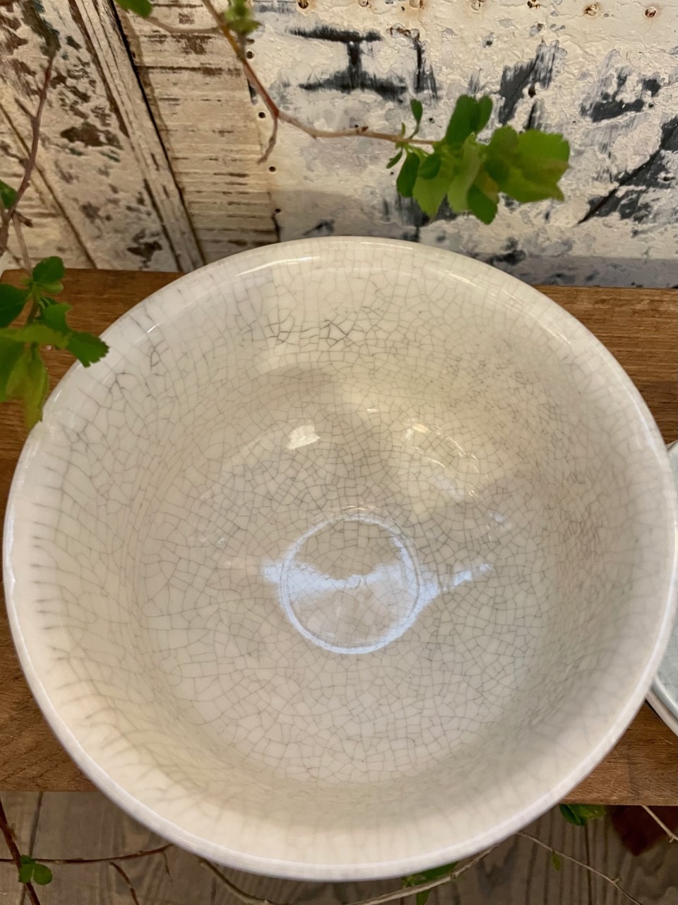 Färg: Mjuk gräddvit glasyr, fint krackelerad och kontrasterad glasyr bearbetad i överlagrade lager med pensel.