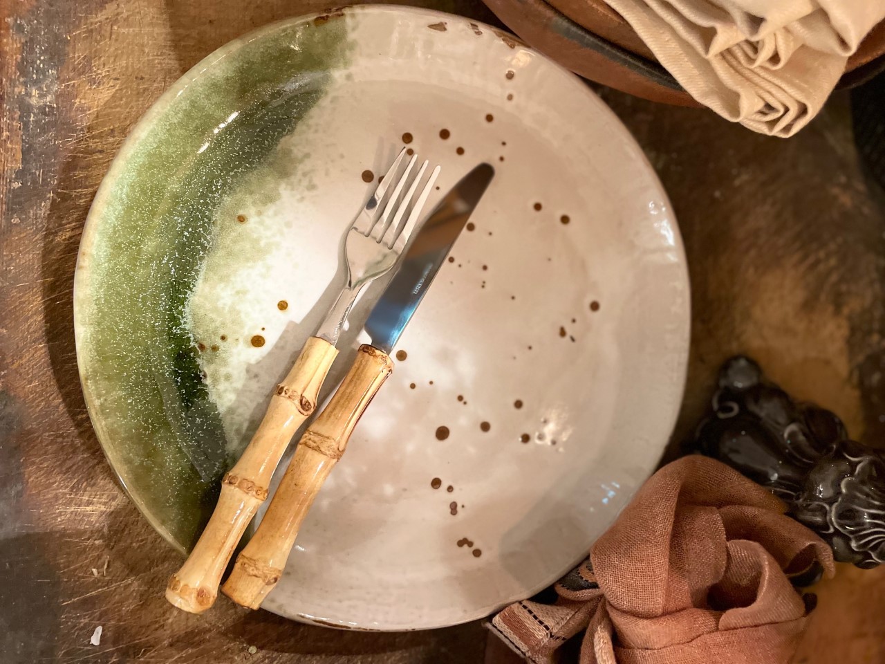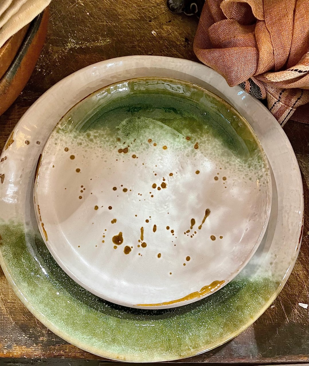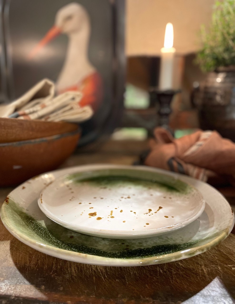 Vacker lite organisk mattallrik i vitt, grönt och natur.
