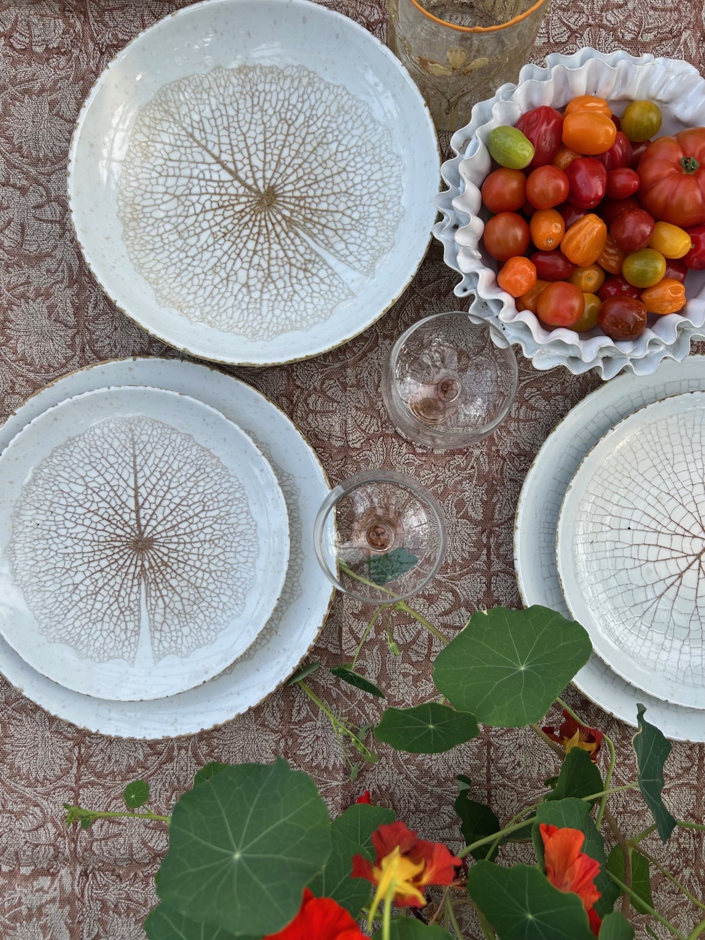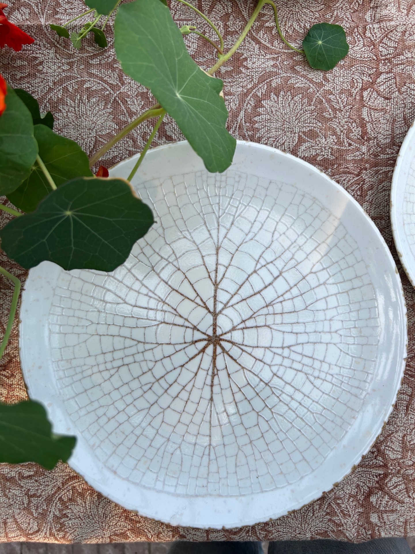 Nät tallrik är en serie av tre olika modeller, assiett, mattallrik samt pastatallrik/djup tallrik. Finns även i ett kompletterande mönster ”ormbunke”. Väldigt vackert att blanda. Tallrikarna är livfulla och eleganta, ger en rustik känsla till det dukade bordet utan att vara klumpiga.