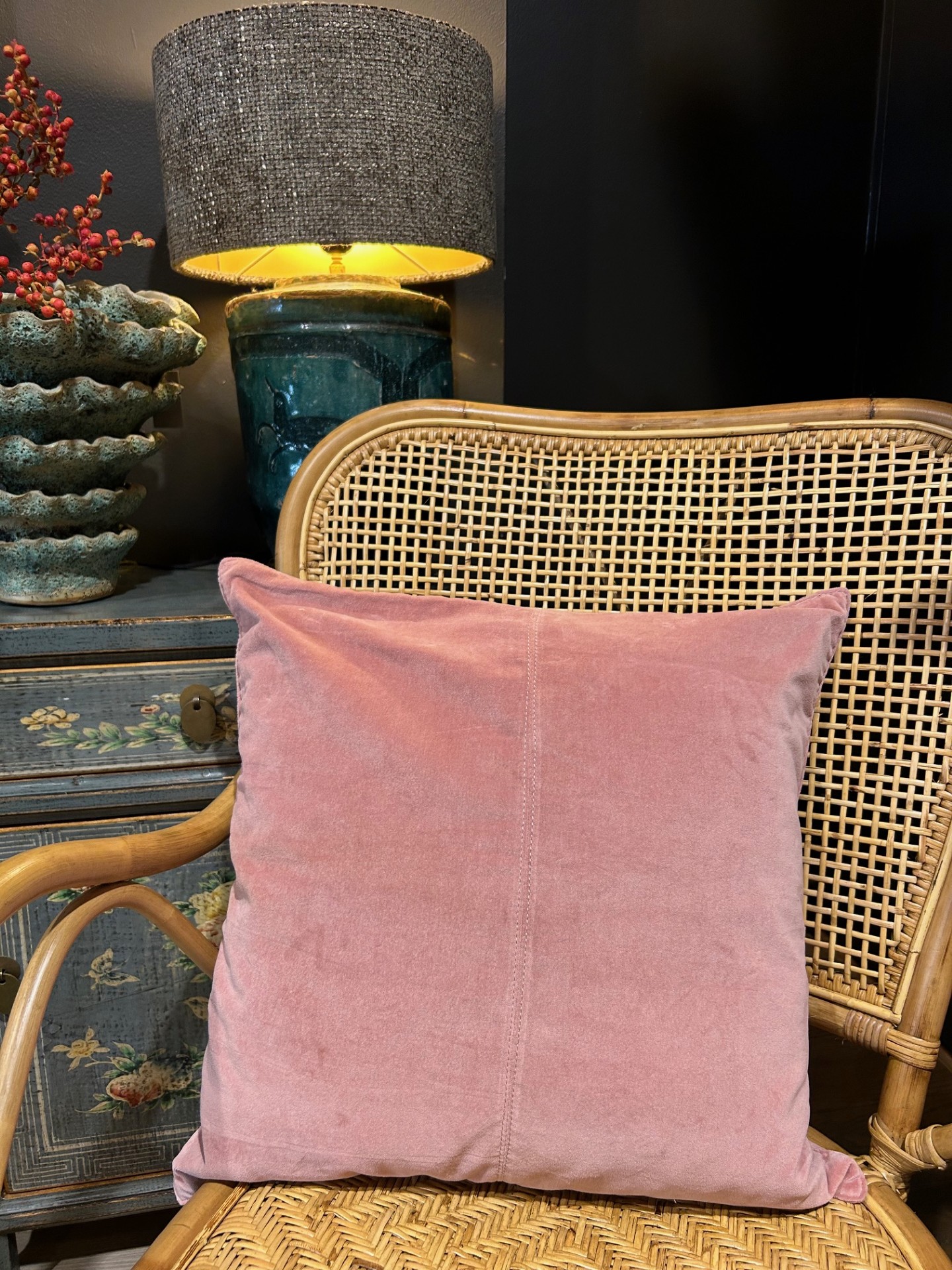 Kuddfodral i vacker sammet som stängs med dragkedja på baksidan.