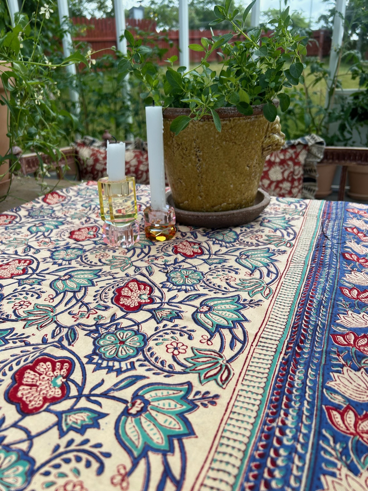 Dessa unika tyger är handgjorda i Indien av 100% bomull.