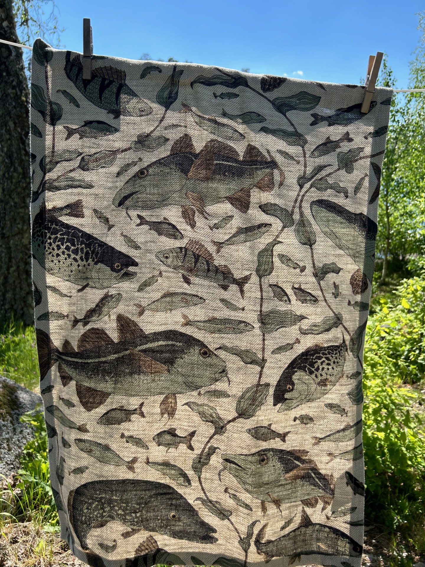 Kökshandduken Havsliv i färgen SjöGrön är en svensk linnehandduk tillverkad i Hälsingland i 100 % linne. Med unik mönsterdesign och miljöcertifierade material.