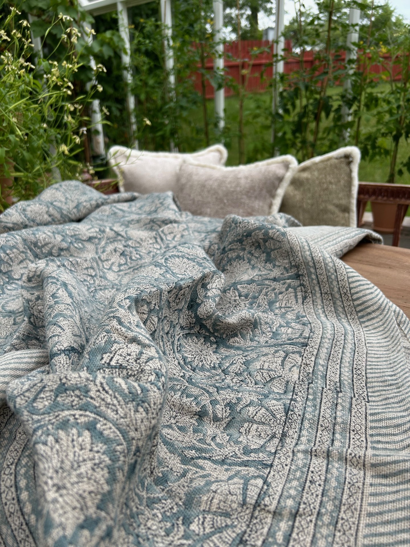 Chamois dukar i 100% linne är för dig som älskar estetik och vackra kvaliteter. Chamois samarbetar med små fabriker och familjeägda företag med över 150 års erfarenhet av att använda sina ärvda färdigheter från Kashmir och andra textilregioner i Indien. Mönster och färger som håller över tid.
