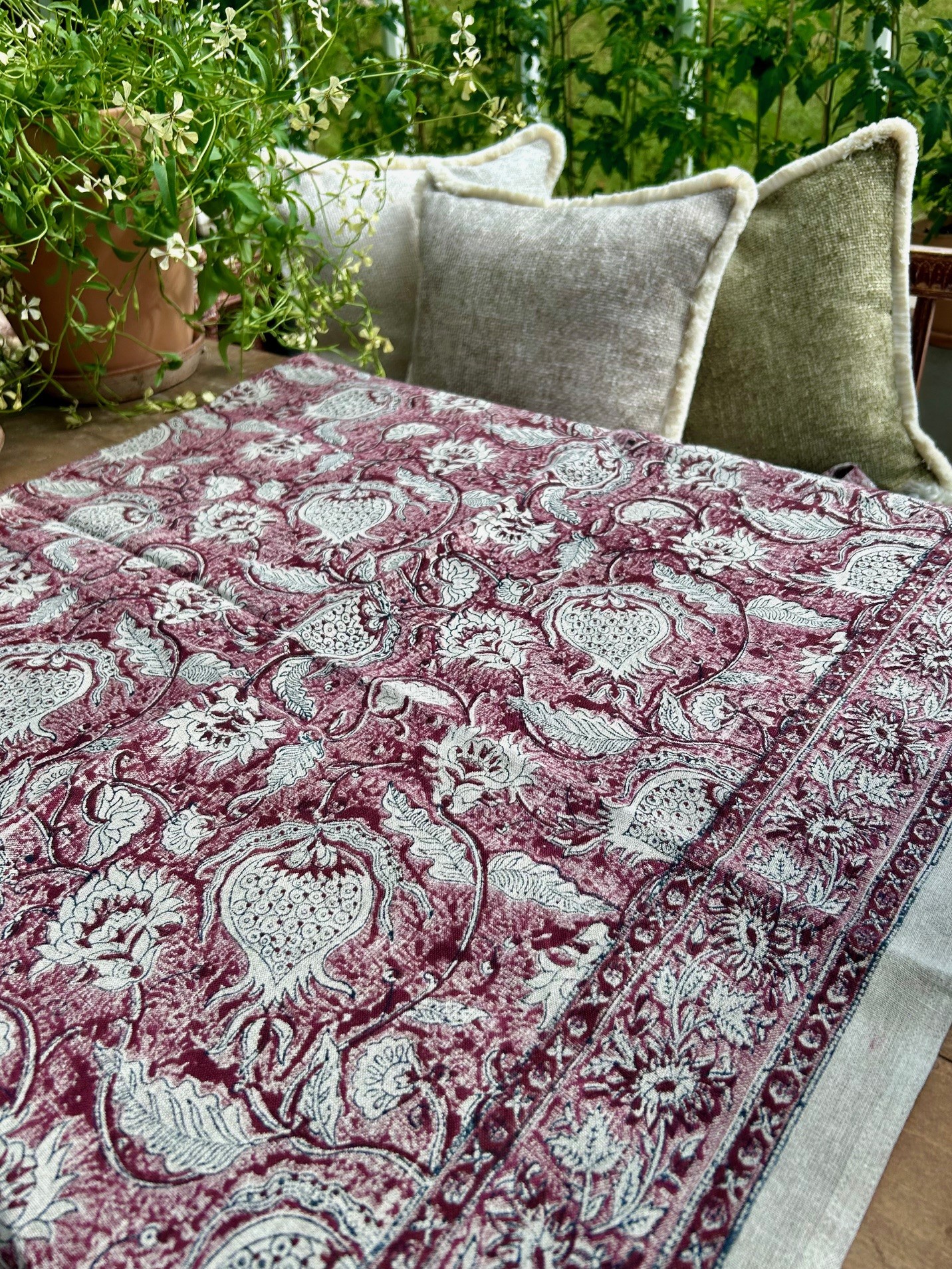 Chamois dukar i 100% linne är för dig som älskar estetik och vackra kvaliteter. Chamois samarbetar med små fabriker och familjeägda företag med över 150 års erfarenhet av att använda sina ärvda färdigheter från Kashmir och andra textilregioner i Indien. Mönster och färger som håller över tid.