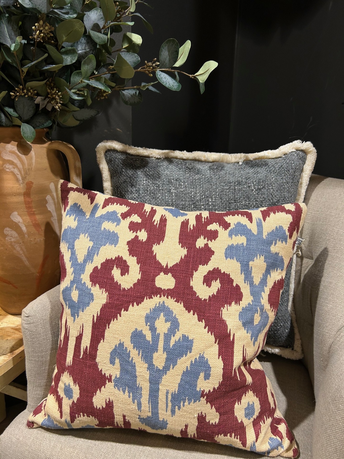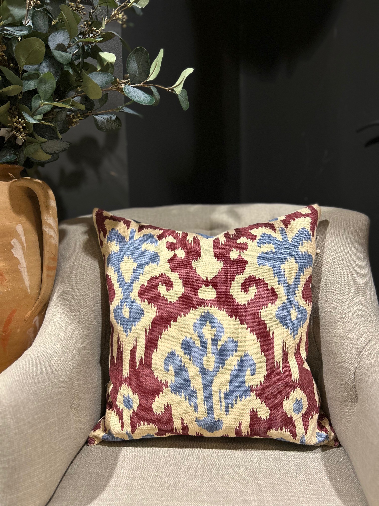 Adi är ett kuddfodral i linne med ett etniskt mönster i storlek 50 x 50 cm. Det dekorativa mönstret drar blickarna till sig och passar lika bra i soffan som ensam i fåtölj. Enfärgad baksida och innerkudde ingår ej.
