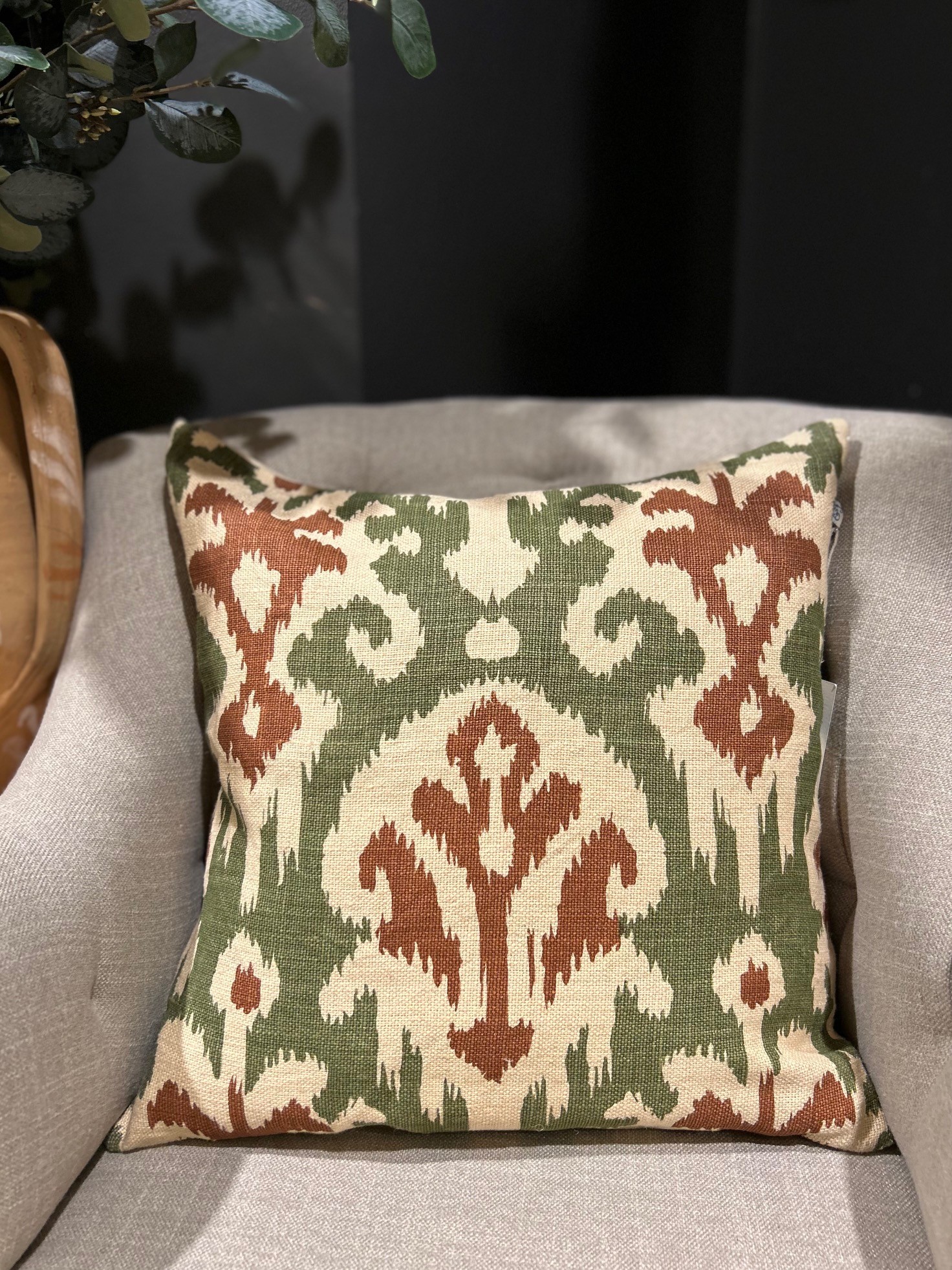 Adi är ett kuddfodral i linne med ett etniskt mönster i storlek 50 x 50 cm. Det dekorativa mönstret drar blickarna till sig och passar lika bra i soffan som ensam i fåtölj. Enfärgad baksida och innerkudde ingår ej.