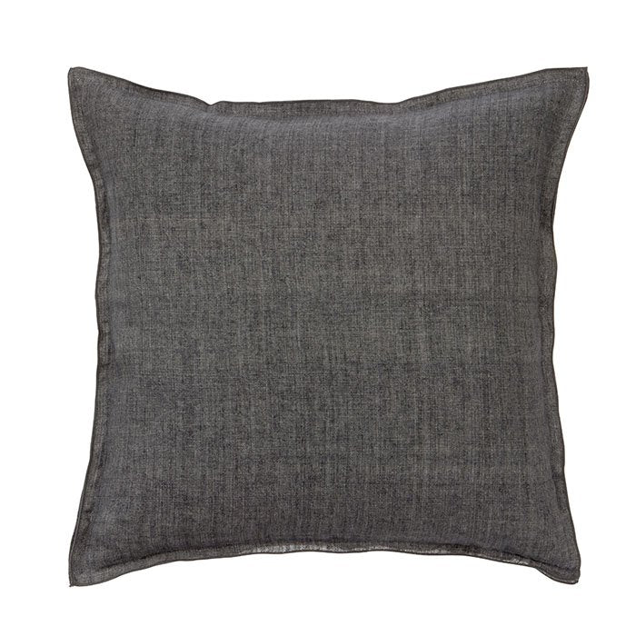 Kuddfodral i 100% linne i färgen charcoal, en färg som ordagrant översatt betyder träkol, en mix av trä och kol, varken svart eller brun utan mitt emellan. Vacker varmgrå nyans med lite dragning åt brunt.