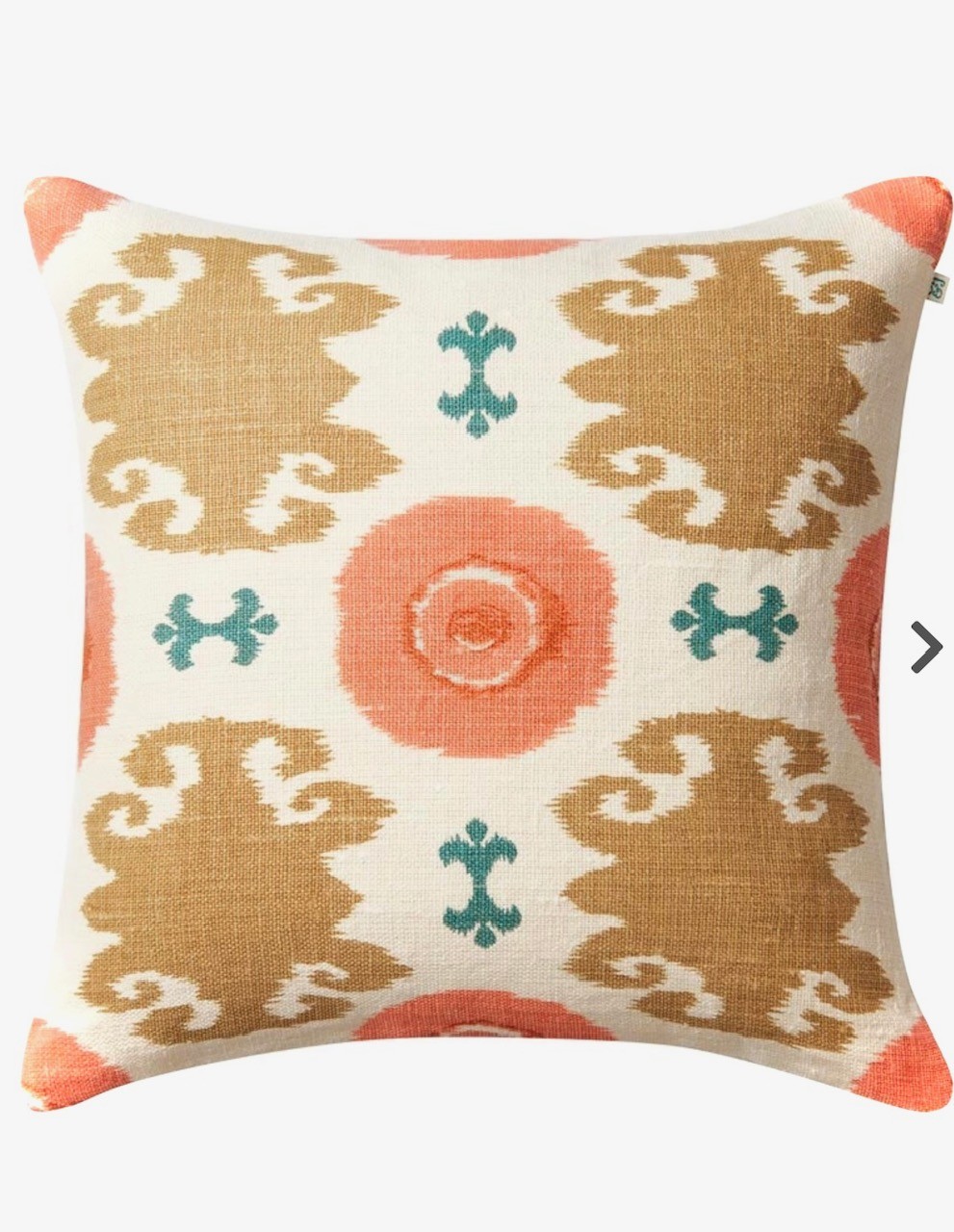 Mahal är ett handtryckt kuddfodral i linne med ett etniskt inspirerat mönster med enfärgad baksida.Sobra färger som enkelt kan matchas med andra mönstrade kuddar och/eller enfärgade linnekuddar och jättefin till våra tibetanska fårskinnskuddar.
