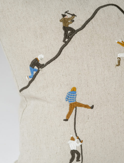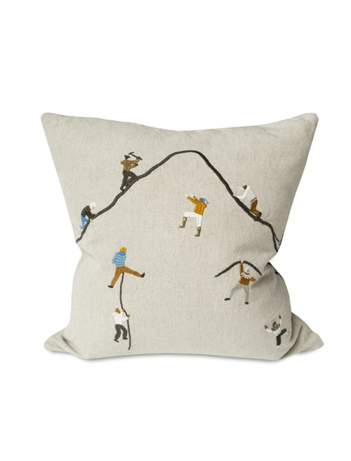 Möt vågorna och känn havets kraft och energi. Kuddfodral i mjuk kraftig oblekt linnecanvas med broderade surfare efter originalteckning av Elisabeth Dunker.