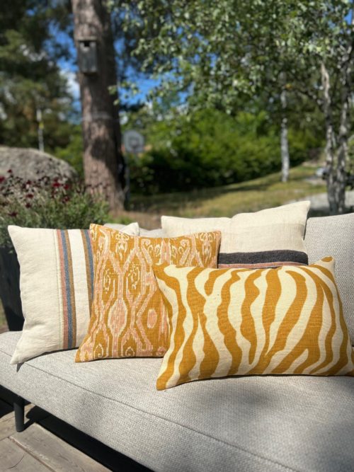 Övrigt: Innerkudde ingår ej (50×50 cm rekommenderas). Stängs med dragkedja i botten. Då materialet är oblekt kan det förekomma olikfärgade trådar.