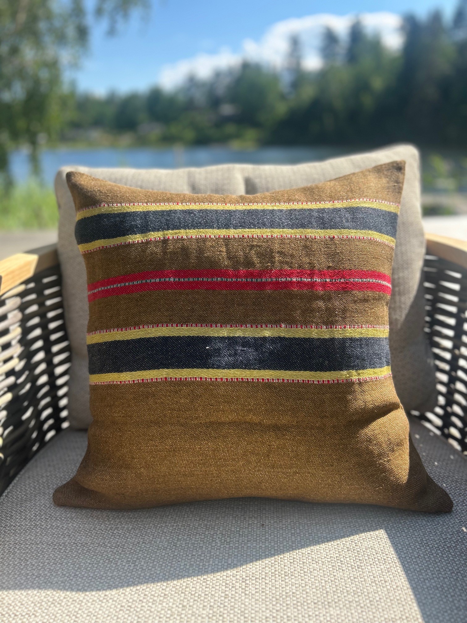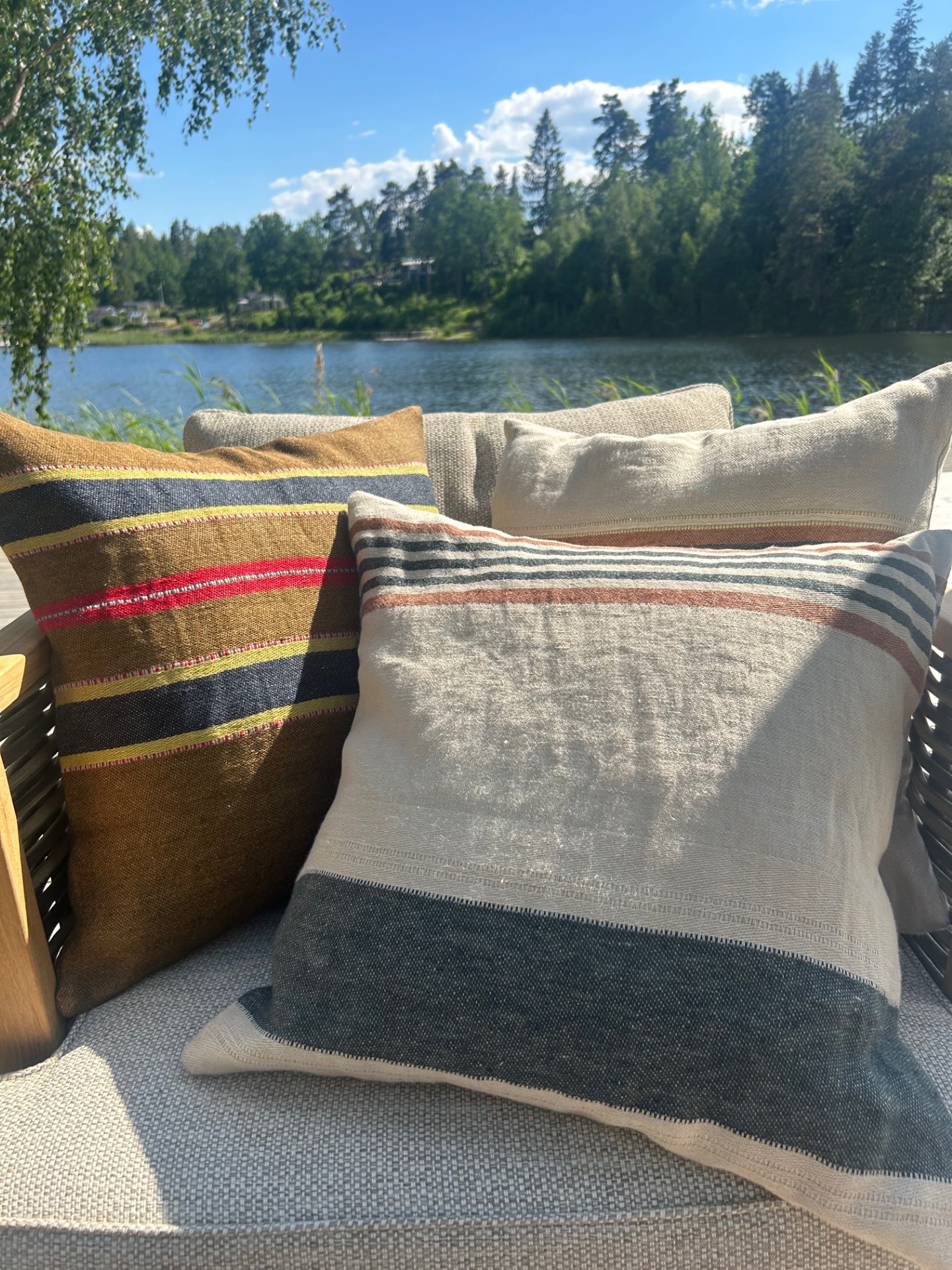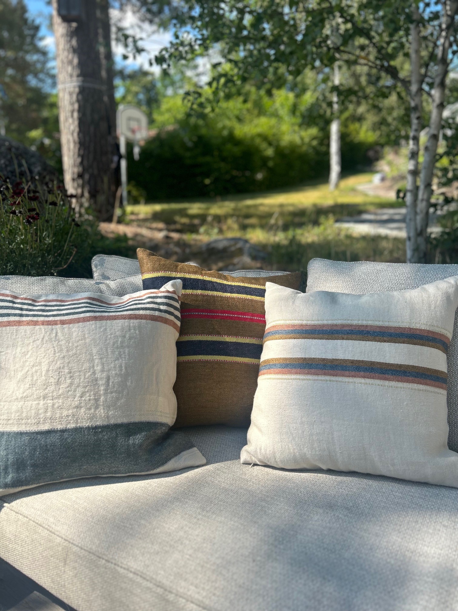 Vackert kuddfodral i 100% linne från det belgiska varumärket Libeco, ett anrikt, miljöcertifierat företag som vävt linne i över 150 år. Ett vackert kuddfodral i 100% belgiskt, tvättat och GOTS-certifierat linne. En jordnära färgsättning med vackra randiga detaljer.