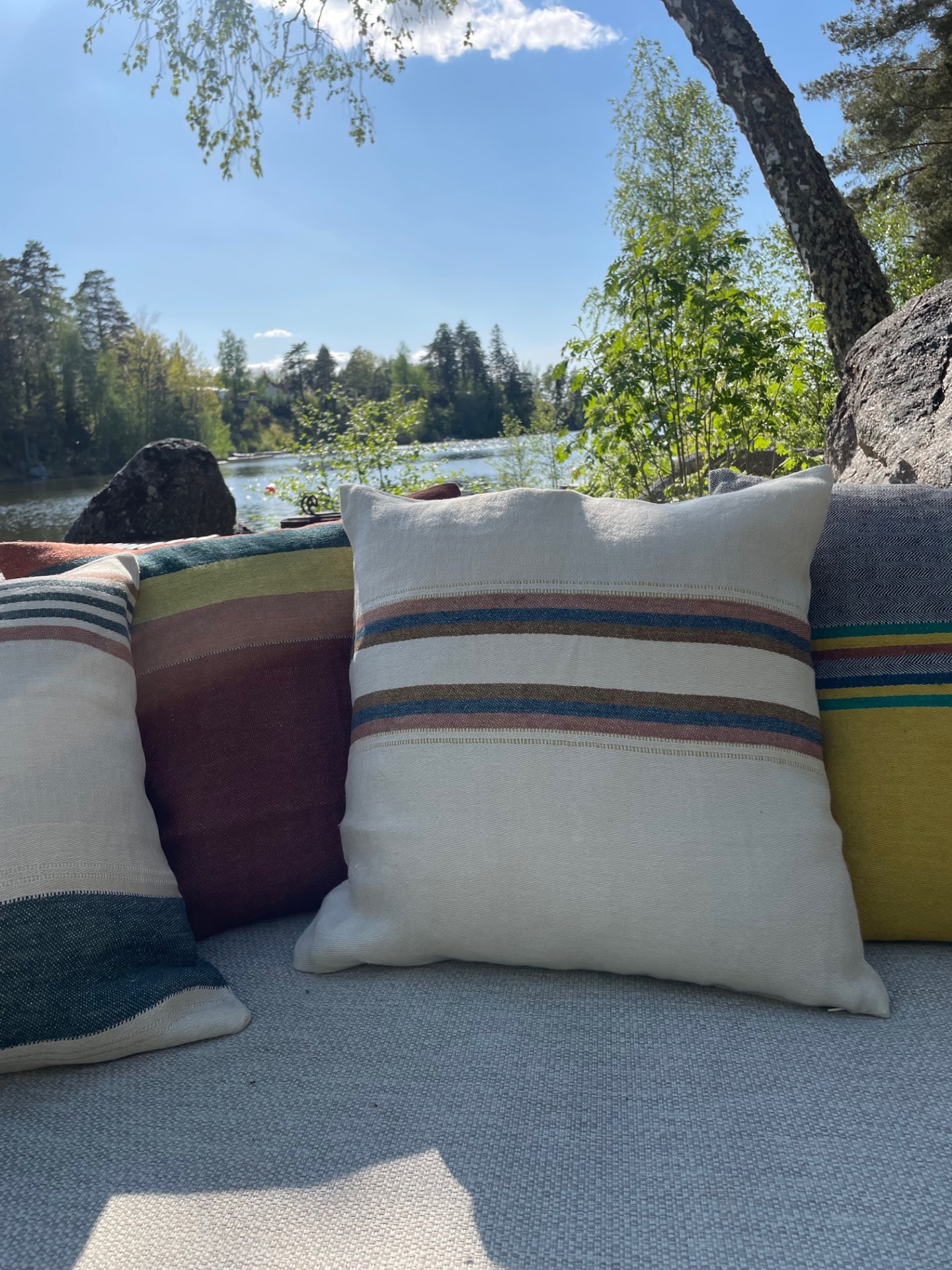 Vackert kuddfodral i 100% linne från det belgiska varumärket Libeco, ett anrikt, miljöcertifierat företag som vävt linne i över 150 år. Ett vackert kuddfodral i 100% belgiskt, tvättat och GOTS-certifierat linne. En jordnära färgsättning med vackra randiga detaljer.