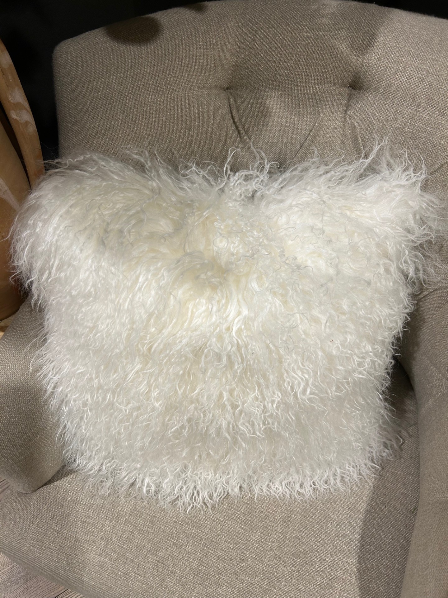 Denna kudde är gjord av tibetansk lammskinn, som kännetecknas av de silkeslena mjuka lockarna i pälsen som ger den ultimata komforten.