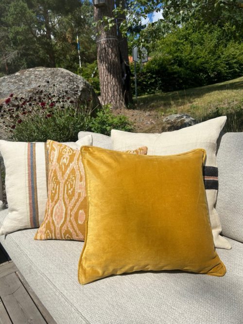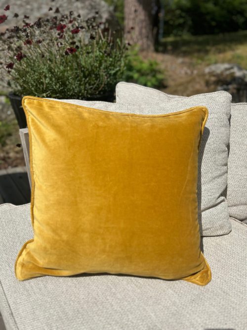Det här kuddfodralet i sammet har en varm bränd ton som sätter pricken över ”i:et”. Måttet 33x50cm är en perfekt storlek på kudde att ha i fåtölj, den är även fin att ha framför de större kuddarna i soffan.