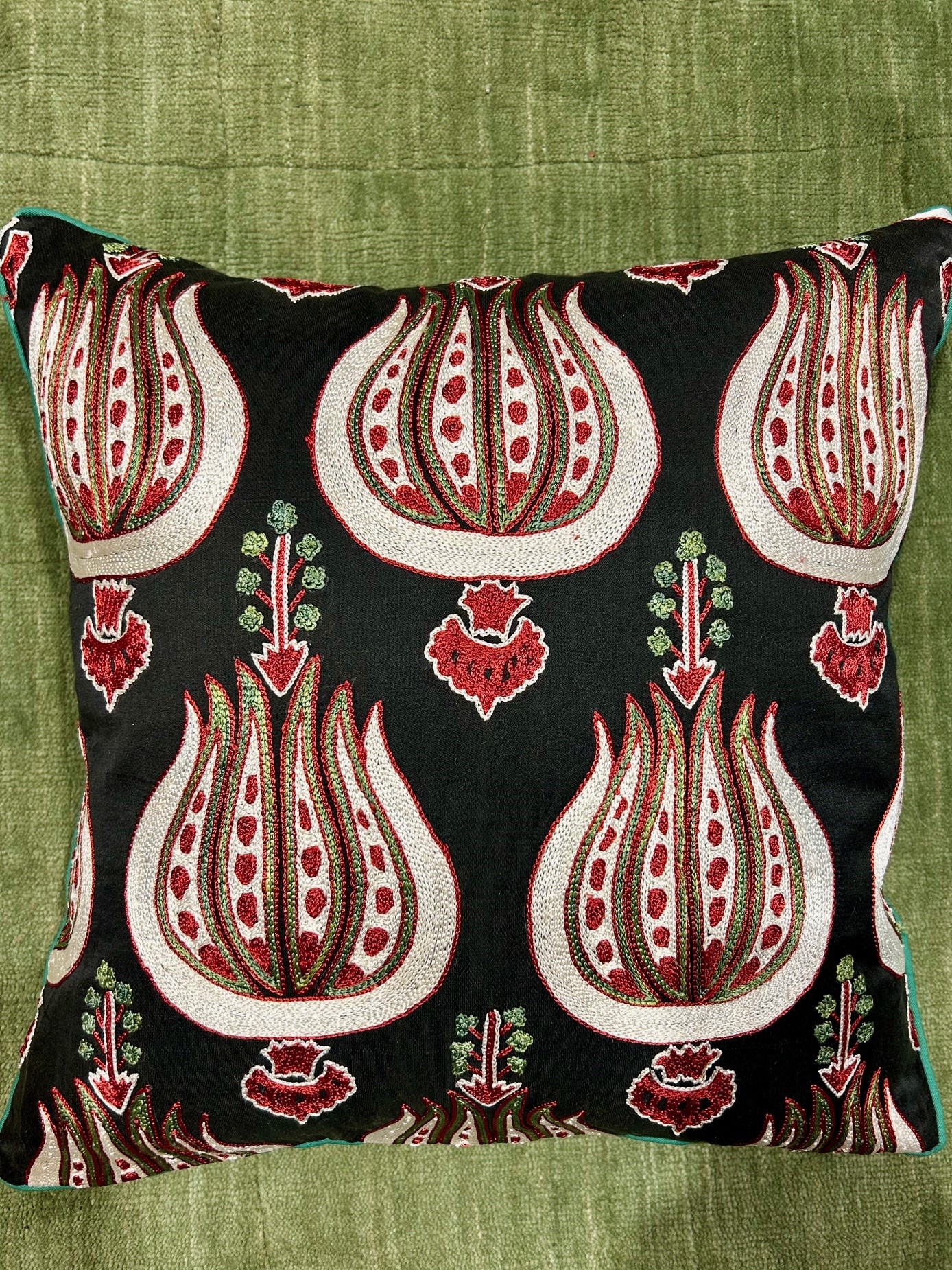 Vackert handgjord Silk Suzani kuddfodral sätter pricken över ”I:et” i soffan. Kudden är handbroderad på sidentyg med naturligt färgade sidentrådar, baksidan är gjord av bomull med dragkedja. Högkvalitativ utsökt design och färger.Varje kudde är unik, handvävd och handfärgad,