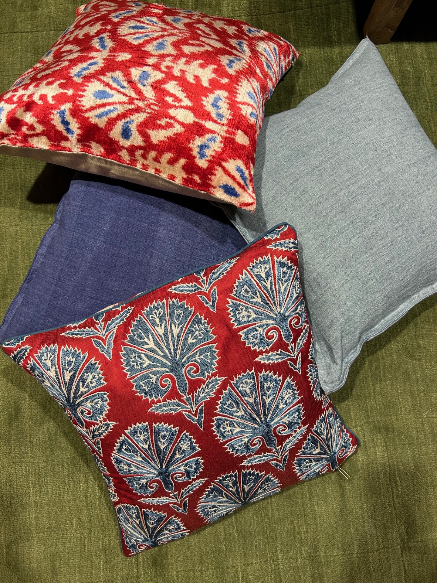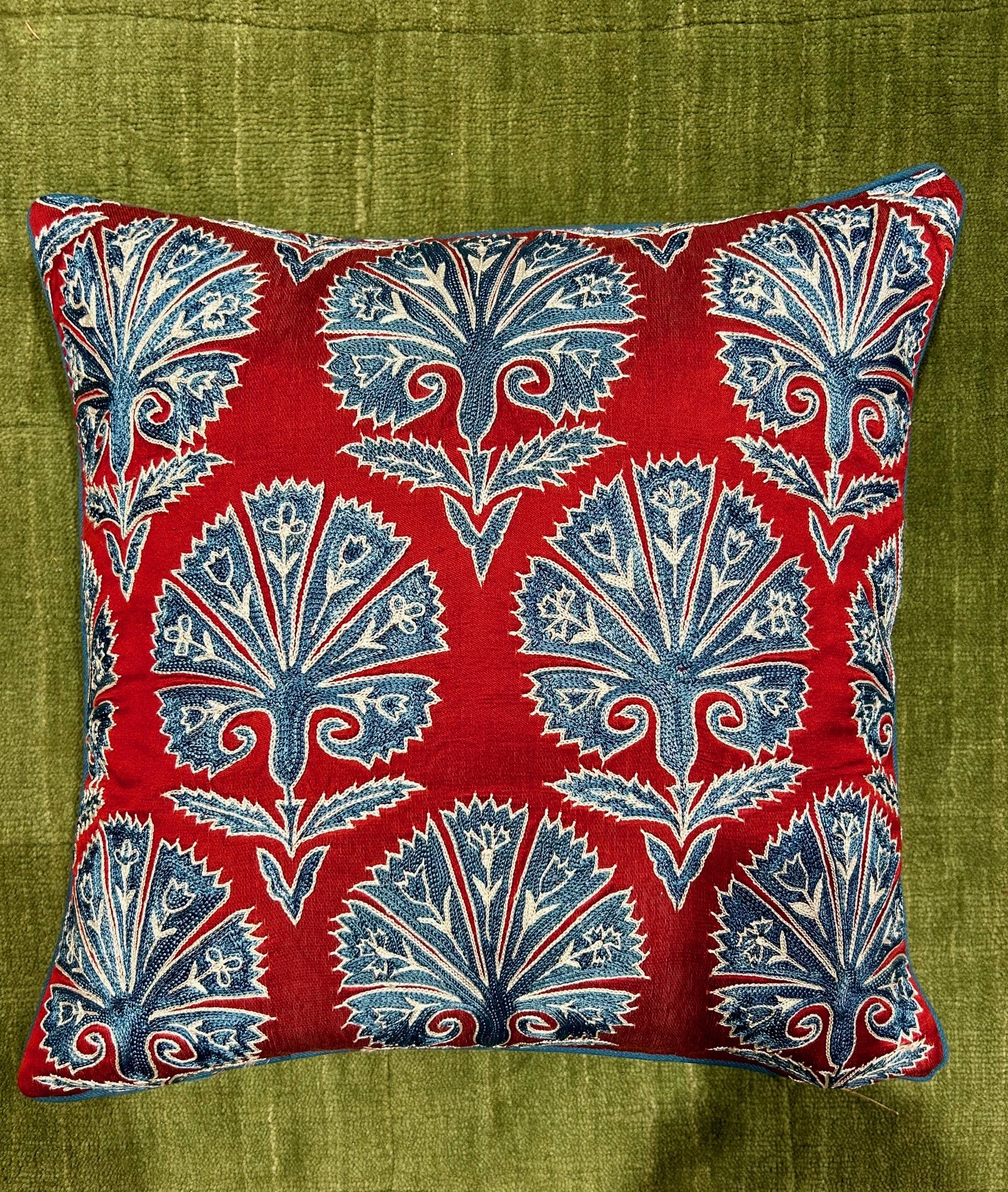 Vackert handgjord Silk Suzani kuddfodral sätter pricken över ”I:et” i soffan. Kudden är handbroderad på sidentyg med naturligt färgade sidentrådar, baksidan är gjord av siden med dragkedja. Högkvalitativ utsökt design och färger.Varje kudde är unik, handvävd och handfärgad,