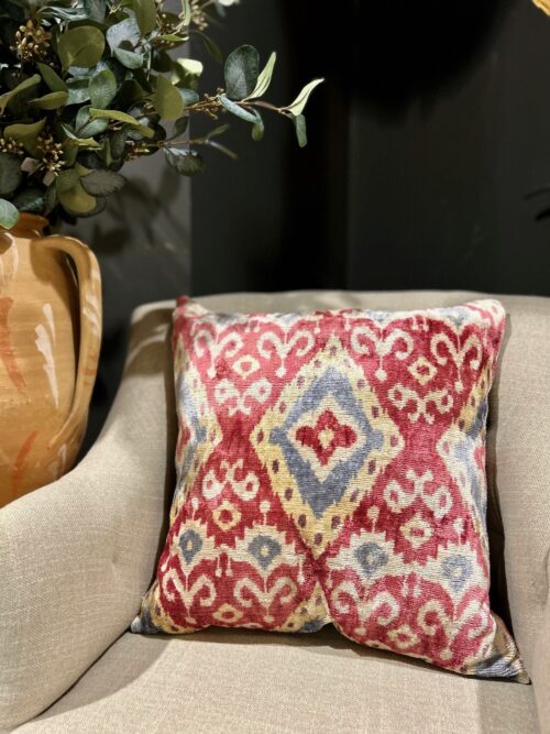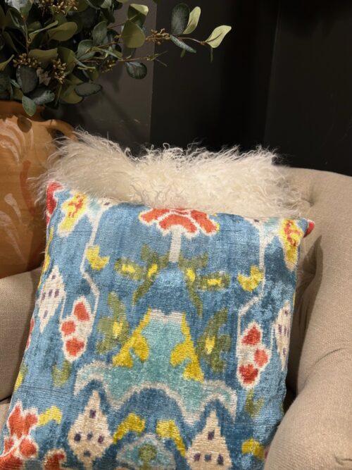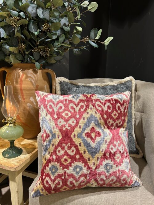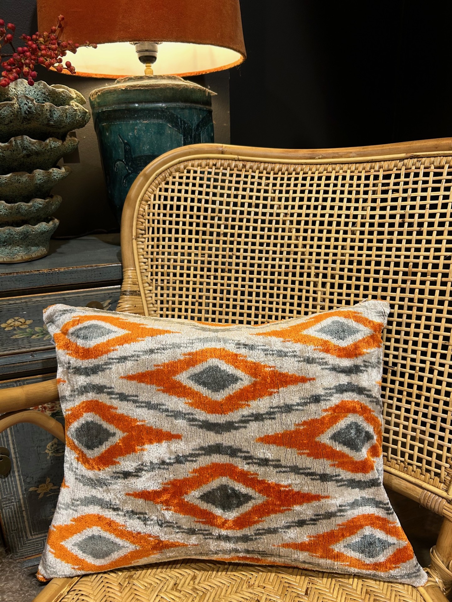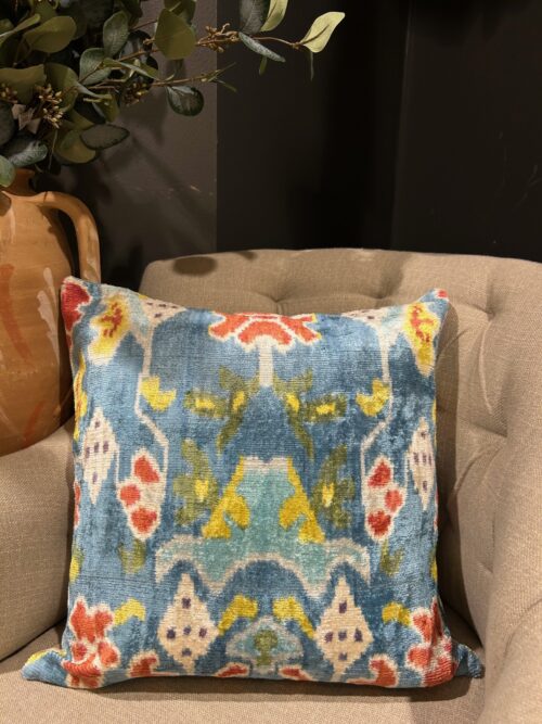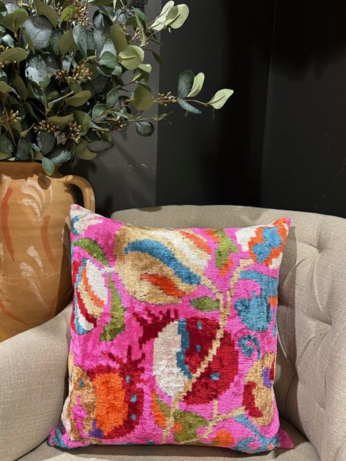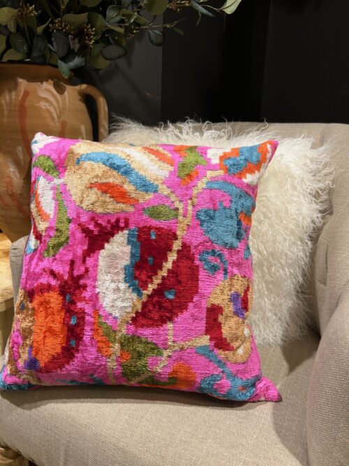 Silk/velvet är en vacker handgjord kudde med enfärgad naturfärgad bomullsbaksida. Eftersom kudden är handgjord är varje exemplar unik och kan därför skilja sig från den som är på bild.