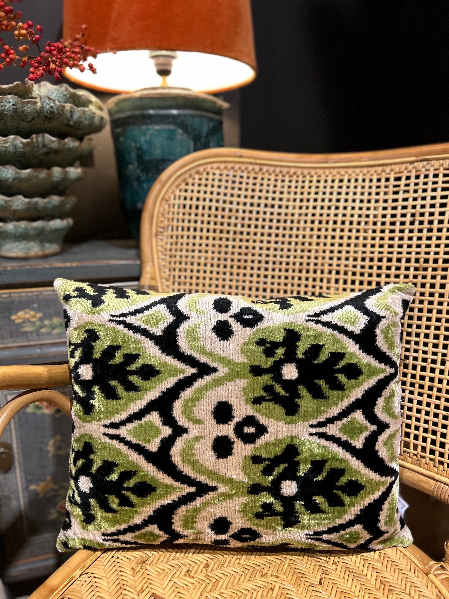 Silk/velvet är en vacker handgjord kudde med bomulls baksida. Eftersom kudden är handgjord är varje exemplar unik och kan därför skilja sig från den som är på bild.