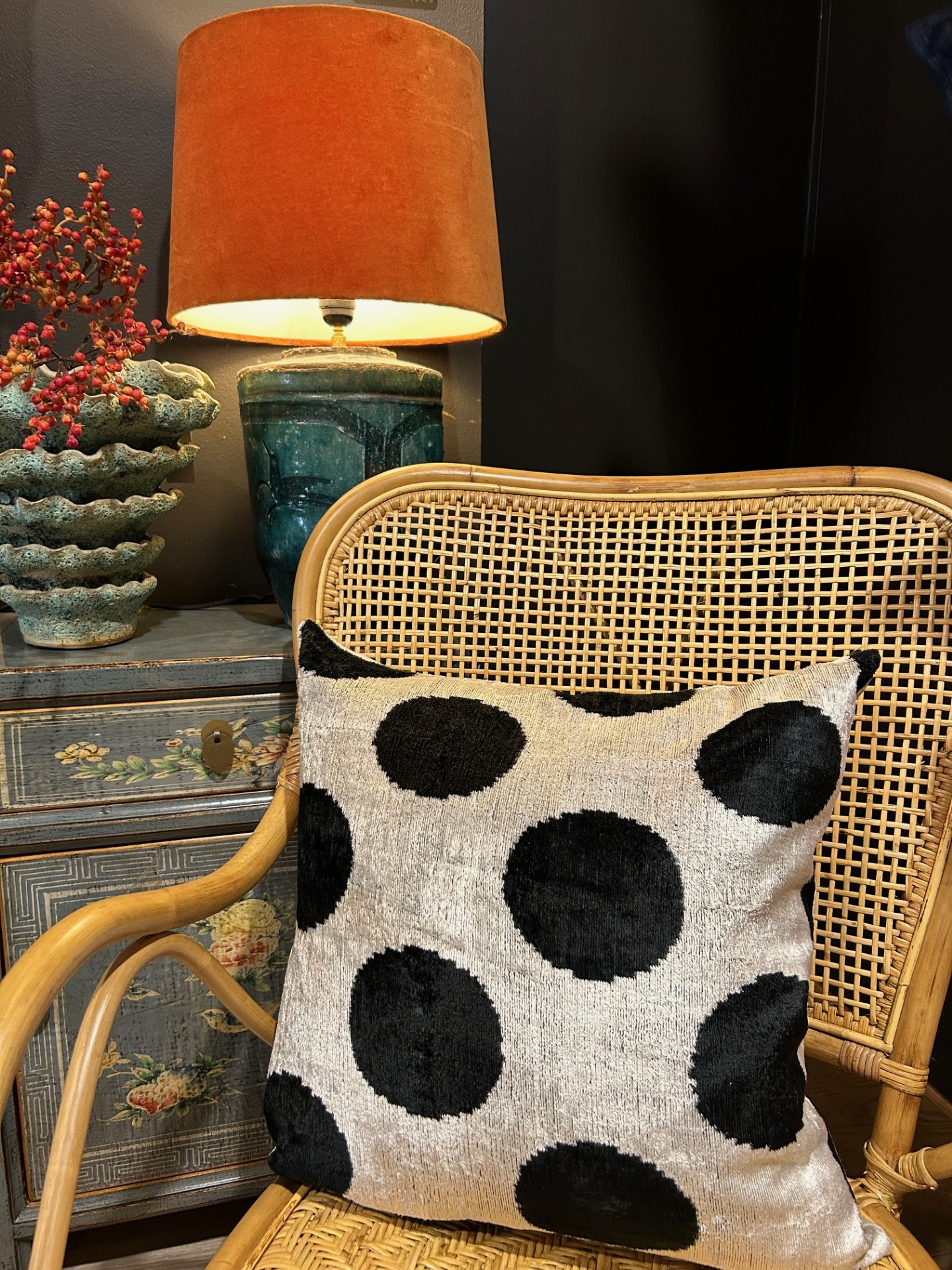 Silk/velvet är en vacker handgjord kudde med bomulls baksida. Eftersom kudden är handgjord är varje exemplar unik och kan därför skilja sig från den som är på bild.